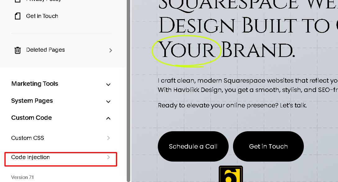 Tip: Squarespace doesn’t allow scripts in free plans. You need a Business or Commerce plan to use header/footer code injection.