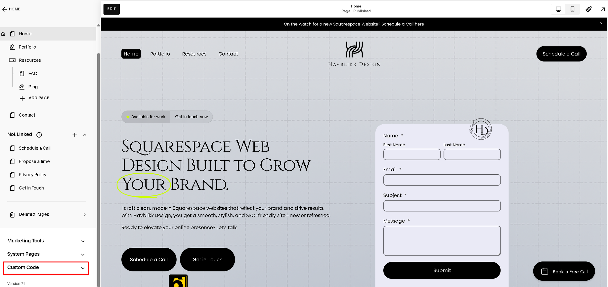 Need to install Google Analytics, a meta tag, or custom CSS? Adding code to your site's header or footer is simple with Squarespace's built-in Custom Code tool. Here’s how to do it in just a few steps: