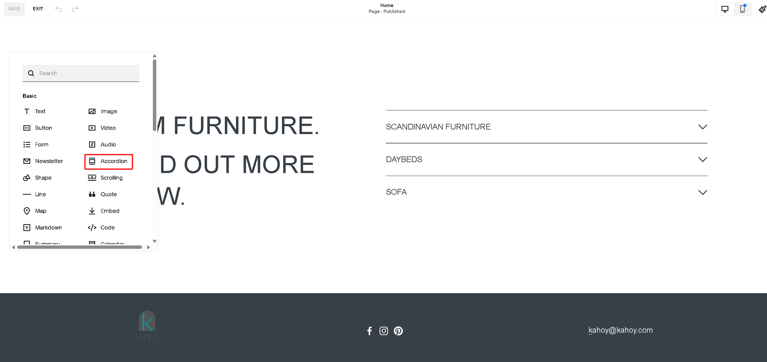 Preview the page to test how the accordion works across desktop and mobile.