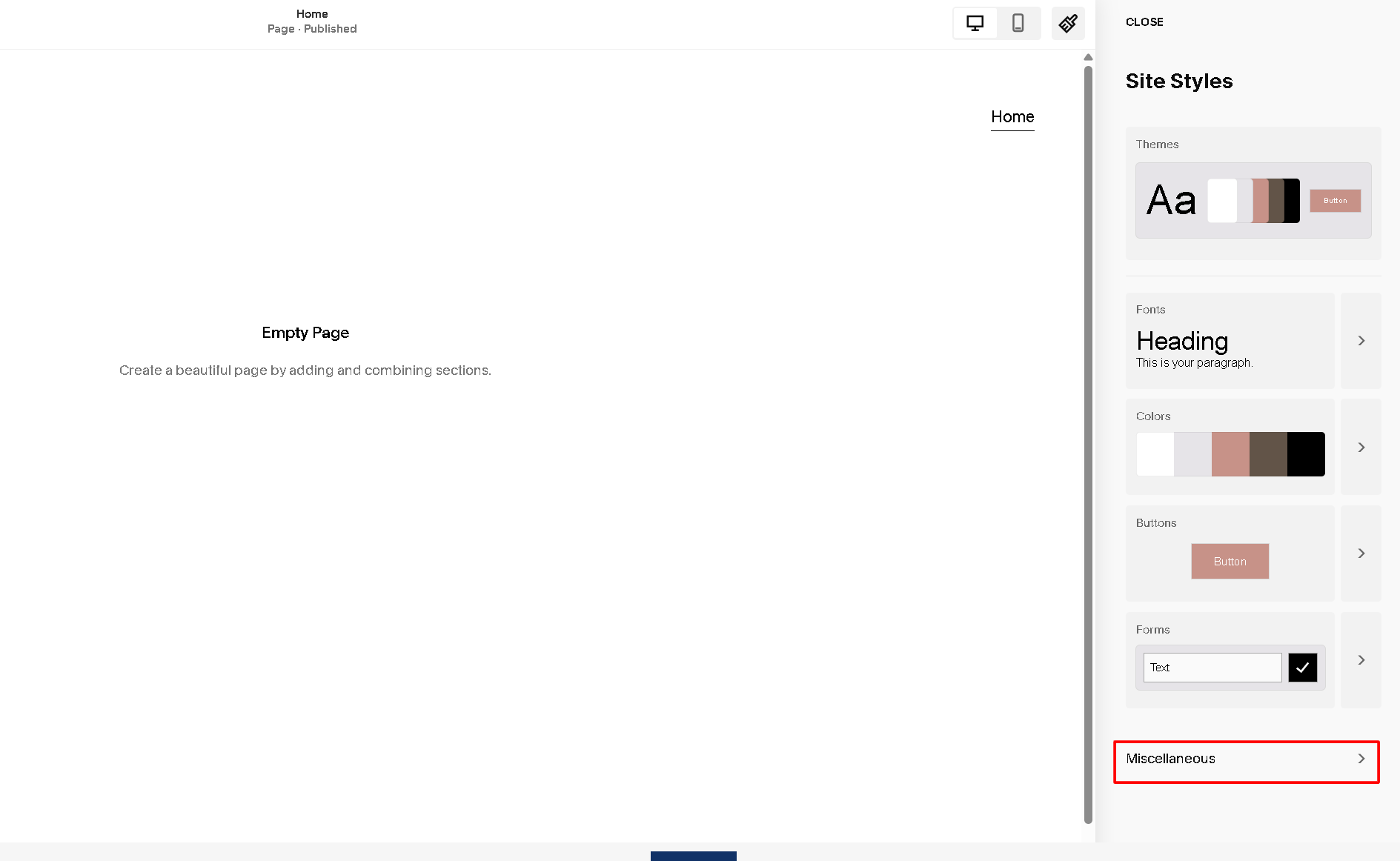 Then click the paintbrush icon in the top-right corner to open Site Styles.
